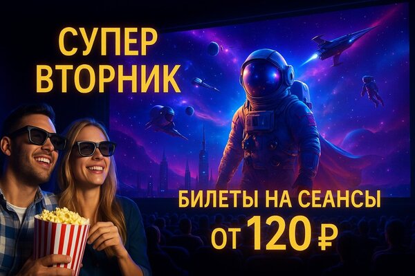 Каждый вторник мы предлагаем специальные условия на посещение киносеансов.